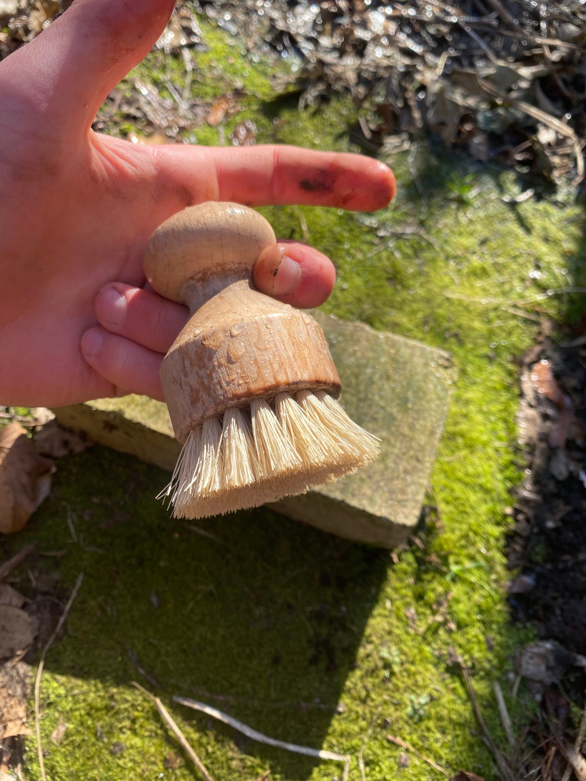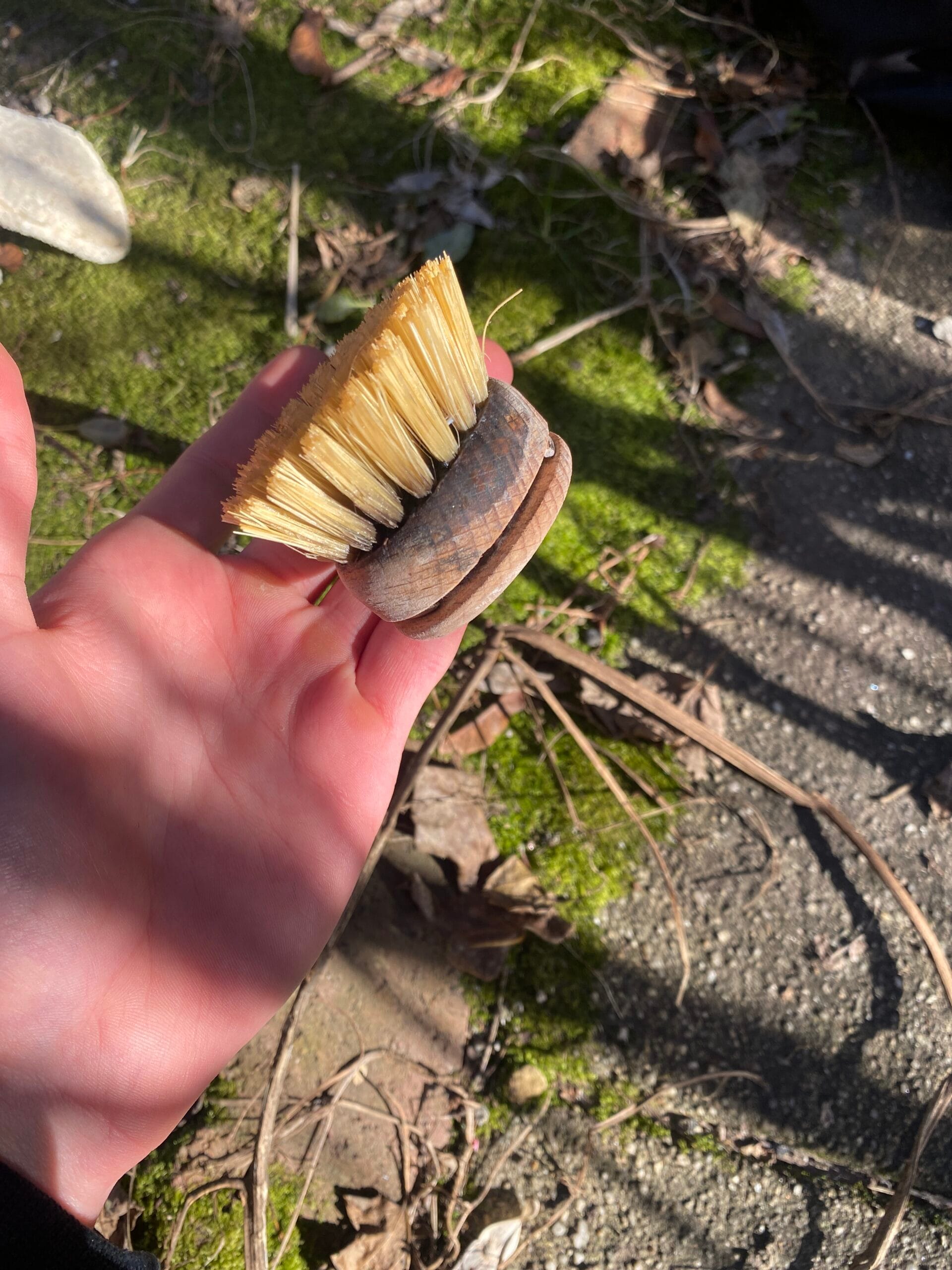 The tight bristles are pretty hard, but natural and soft so they don’t scratch, but remove those nasty oil stains!