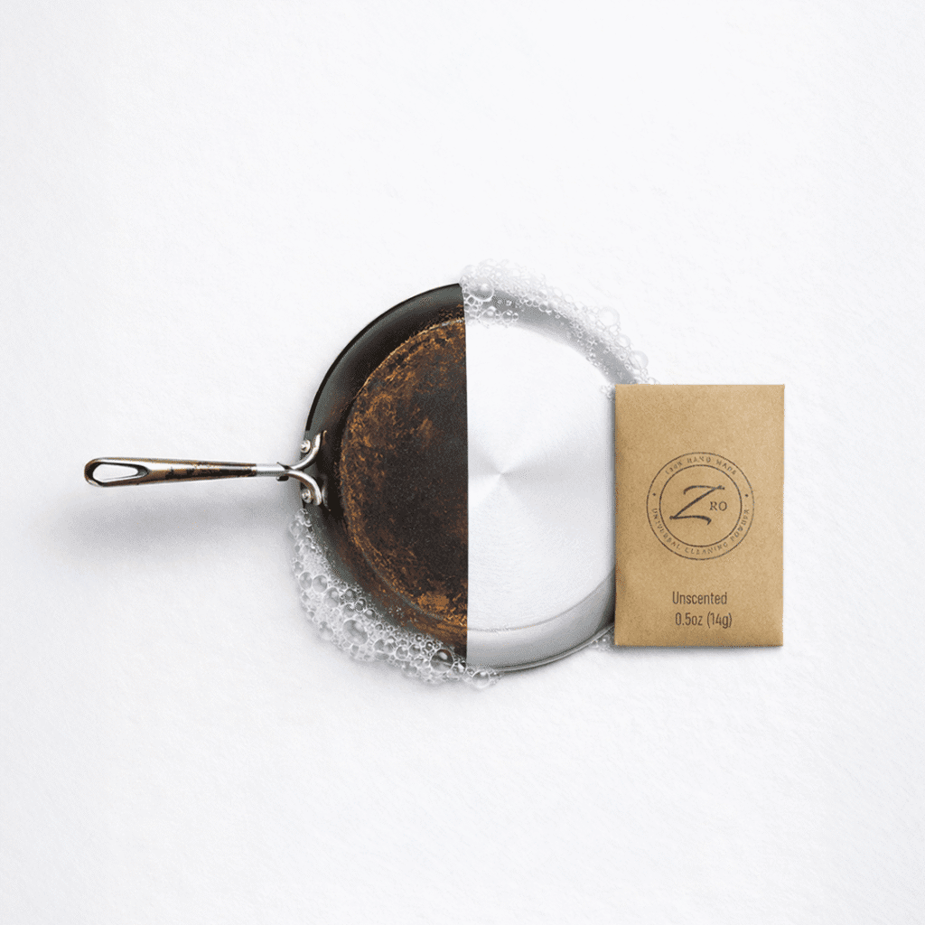 Zro “peels” off stains, which makes it the perfect soap to clean bathtubs, pans, metals, porcelains, etc.